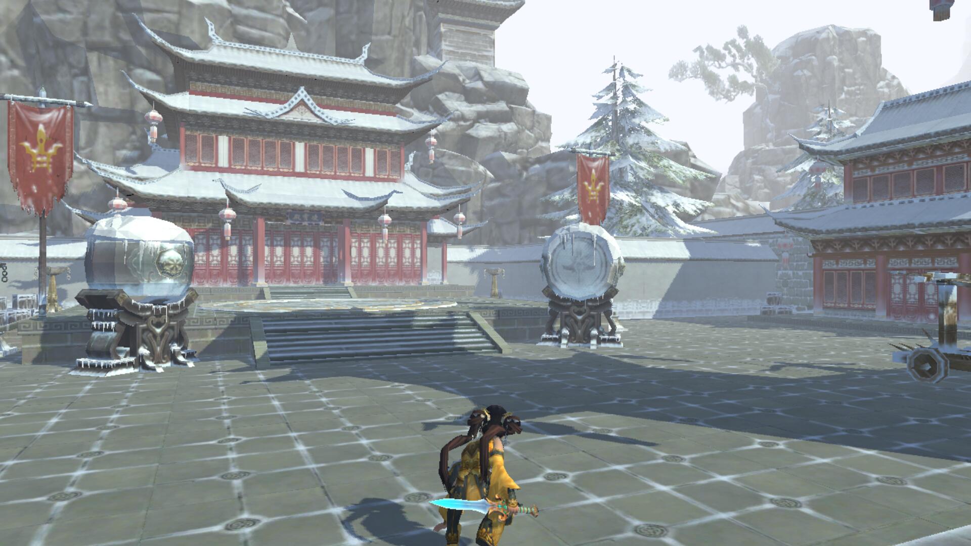 2021年3月2日11点18分,新版积雪城:这张图真难看喵;排除了天空盒的光照影响,使平行光照下来,调整光影颜色和角度喵;11点23分,添加了白色的距离雾,制造大雪的感觉,增加空间感喵;11点25分,调整了平行光角度,使其更斜喵;