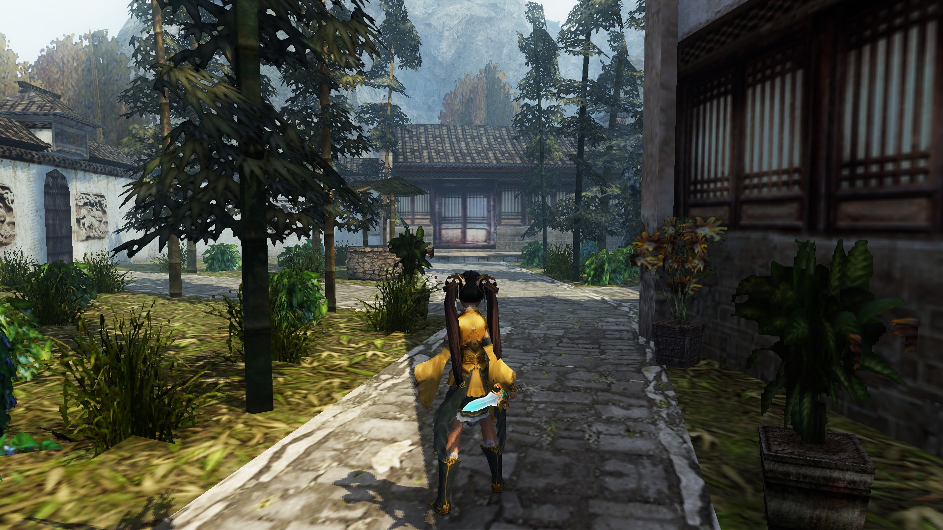 小李飞刀-恩平山庄:2022年6月1日09点09分,鬼哭让我调的,地图在视觉上比较狭窄混乱,材质都是用Colorkey的,导致性能比较差,开启天空盒功能会变黑喵;添加了基本白天光影喵;09点13分,人工灯具的辉光贴图是单独分类的,非常方便,批量排除它的光影影响,修复阴影BUG喵;09点17分,把平行光对齐天空盒的太阳角度喵;09点19分,调整级联分割,提高阴影质量喵;提高法线偏移,修复阴影瑕疵喵;09点21分,添加淡蓝色距离雾,略微缓解地图狭窄挤压的感觉喵;09点25分,由于无法和距离雾混合,隐藏远处的半透明云雾喵;09点29分,添加体积光天空,让天空贴图显示出来喵;09点34分,关闭大门流水贴图的投射阴影,修复阴影BUG喵;09点35分,辉光贴图离远了会被距离雾变成蓝色圈圈,没办法自然淡出,只好隐藏掉辉光了,刚好也是白天光影喵;09点44分,微调距离雾和天空颜色喵;09点47分,微微增加距离雾开始,让近处对比度更高喵;09点53分,检查了一遍,发现山之间有漏洞,能掉下地图喵;